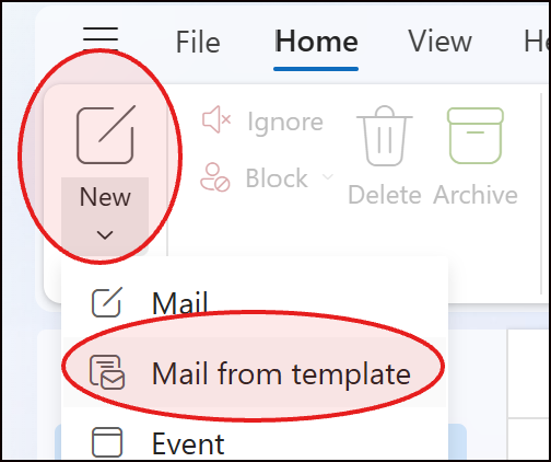 To use it later: New > Mail from template.