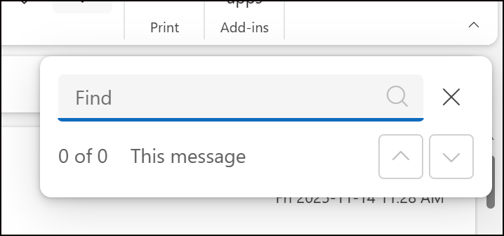 Ctrl + Shift + F for search (and for Finally!) You can search with the shortcut key IN your emails. Note: this was not documented correctly by Microsoft.