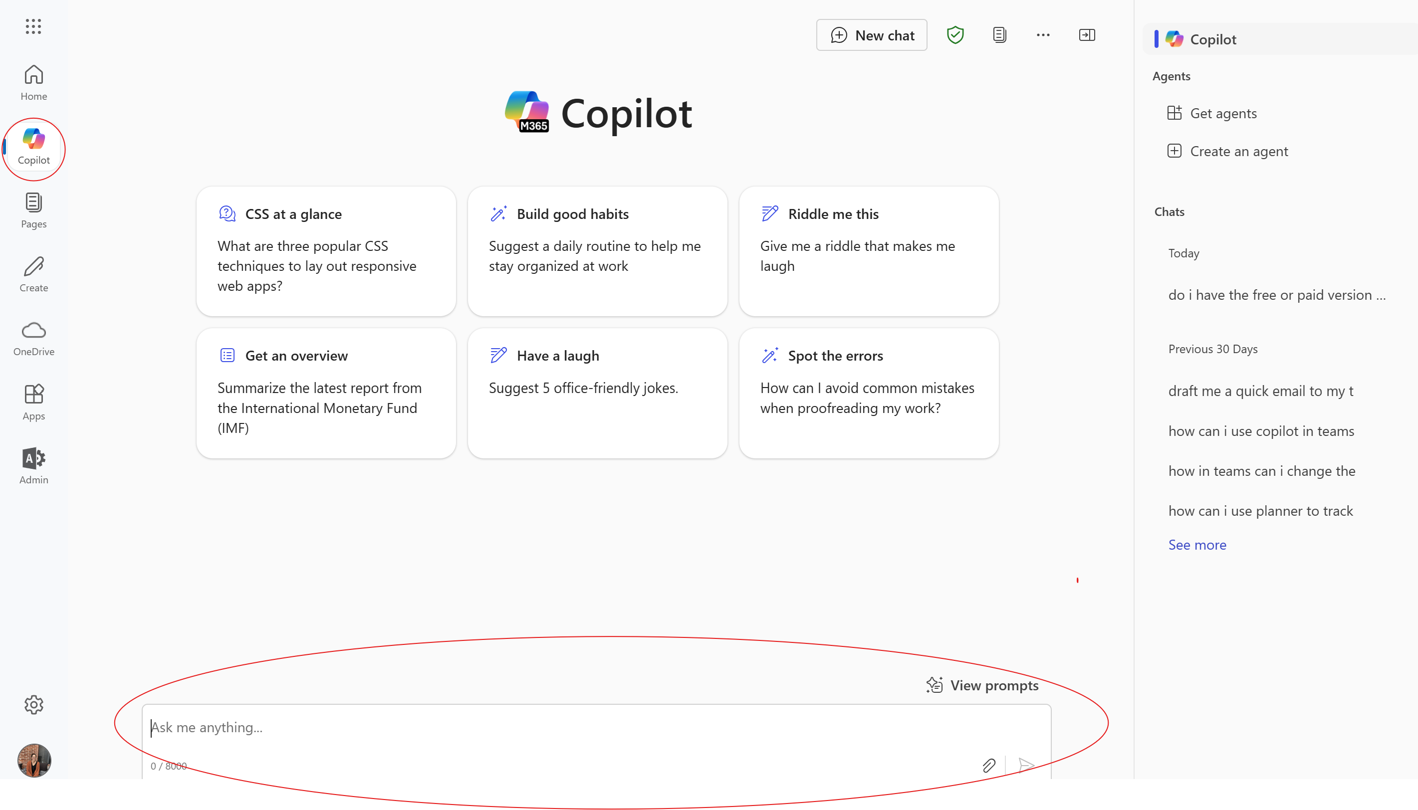 - Open up M365 in your browser or go directly to Copilot (https://copilot.microsoft.com)