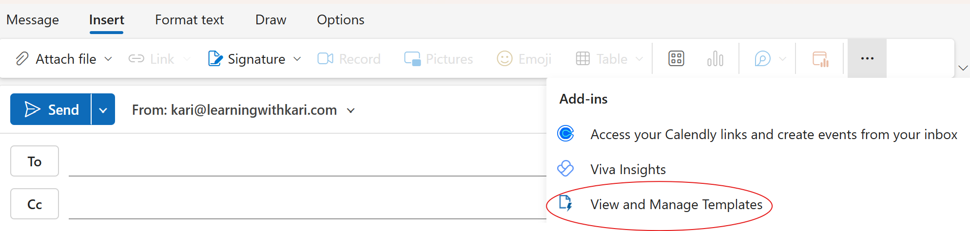 If you're using the NEW Outlook, you will have access to the new feature, My Templates. It's not a full on email template like it sounds, but rather something you can insert into your emails. In the prior ("old") verision of Outlook if you are still using that, it's a feature called Quick Parts that works very similarly.
