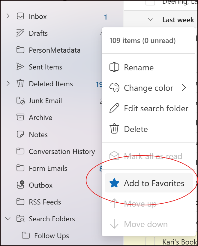 In the Folder Pane (left side), spot your Search Folder (e.g., “VIP Emails” or “Urgent”). - Add to Favorites